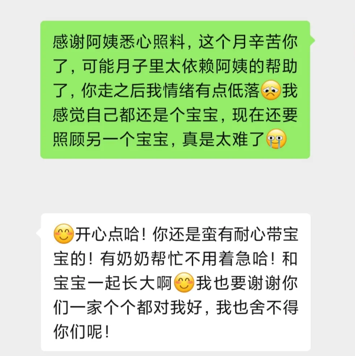 可惜我不打算再生二胎了,不然我还能再请阿姨照顾月子。